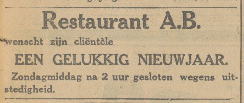 Gronausestraat restaurant A.B. advertentie Tubantia 30-12-1932.