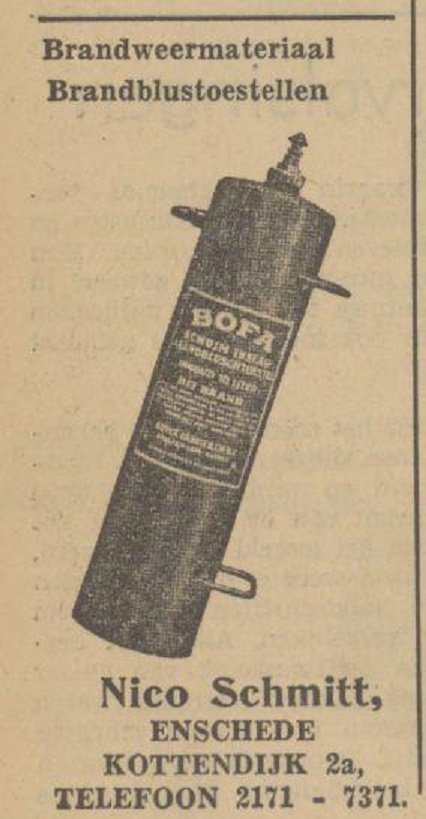 Kottendijk 2a Nico Schmitt brandweermateriaal advertentie Tubantia 6-1-1951.