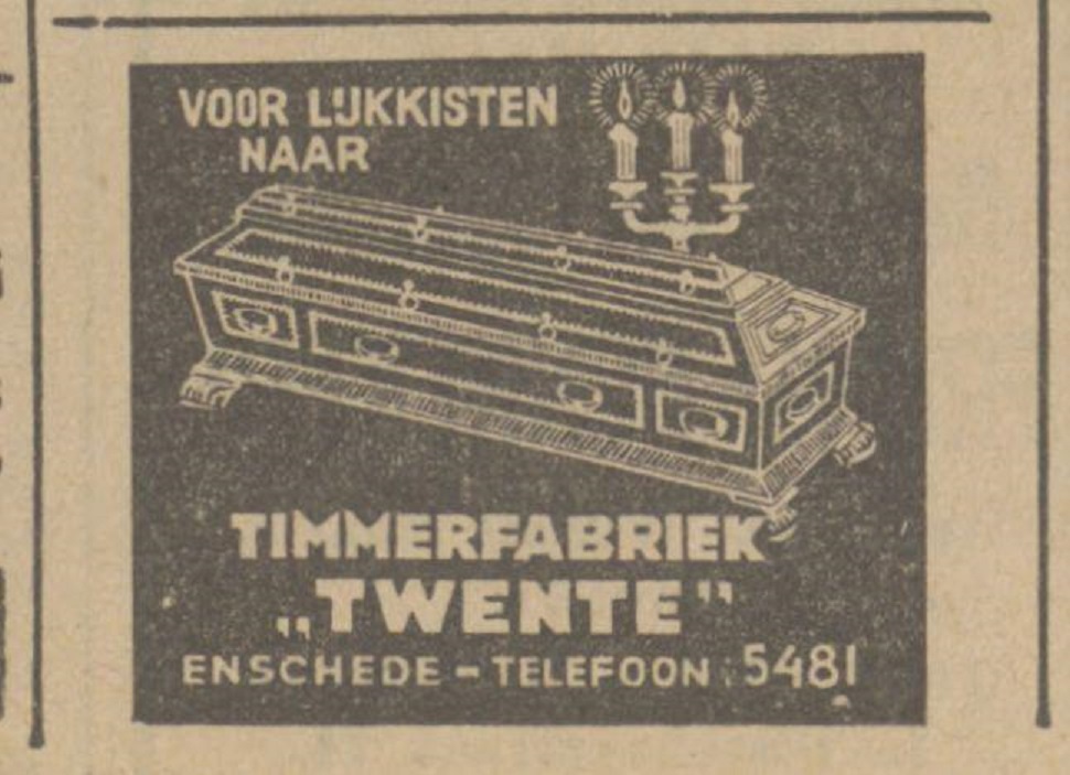 Binnenhaven 136 Timmerfabriek Twente advertentie Tubantia 4-2-1942.