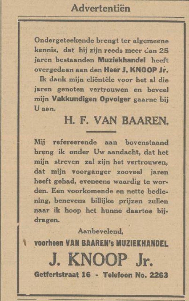 Getfertstraat 16 J.Knoop Jr v.h. Van Baaren's Muziekhandel 19-6-1934.jpg