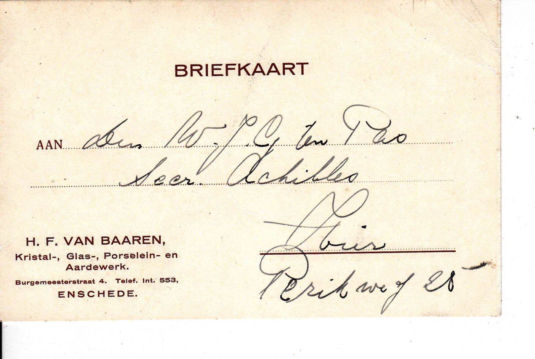 Burgemeesterstraat 4 H.F. van Baaren Kristal, Glas, Porselein en Ardewerk briefkaart.jpg