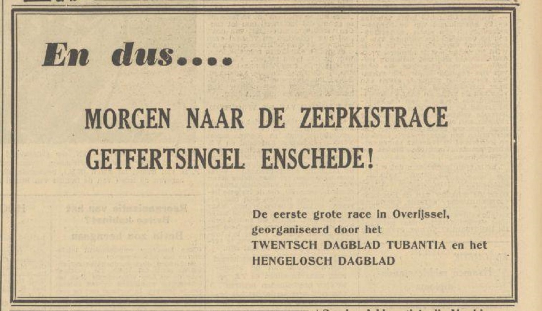 Getfertsingel zeepkistrace advertentie Tubantia 11-8-1950.