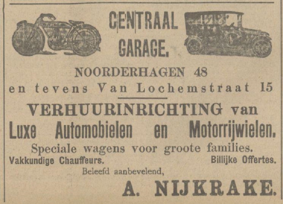 Van Lochemstraat 15 Noorderhagen 48 Centraal Garage A. Nijkrake advertentie Tubantia 28-4-1914.