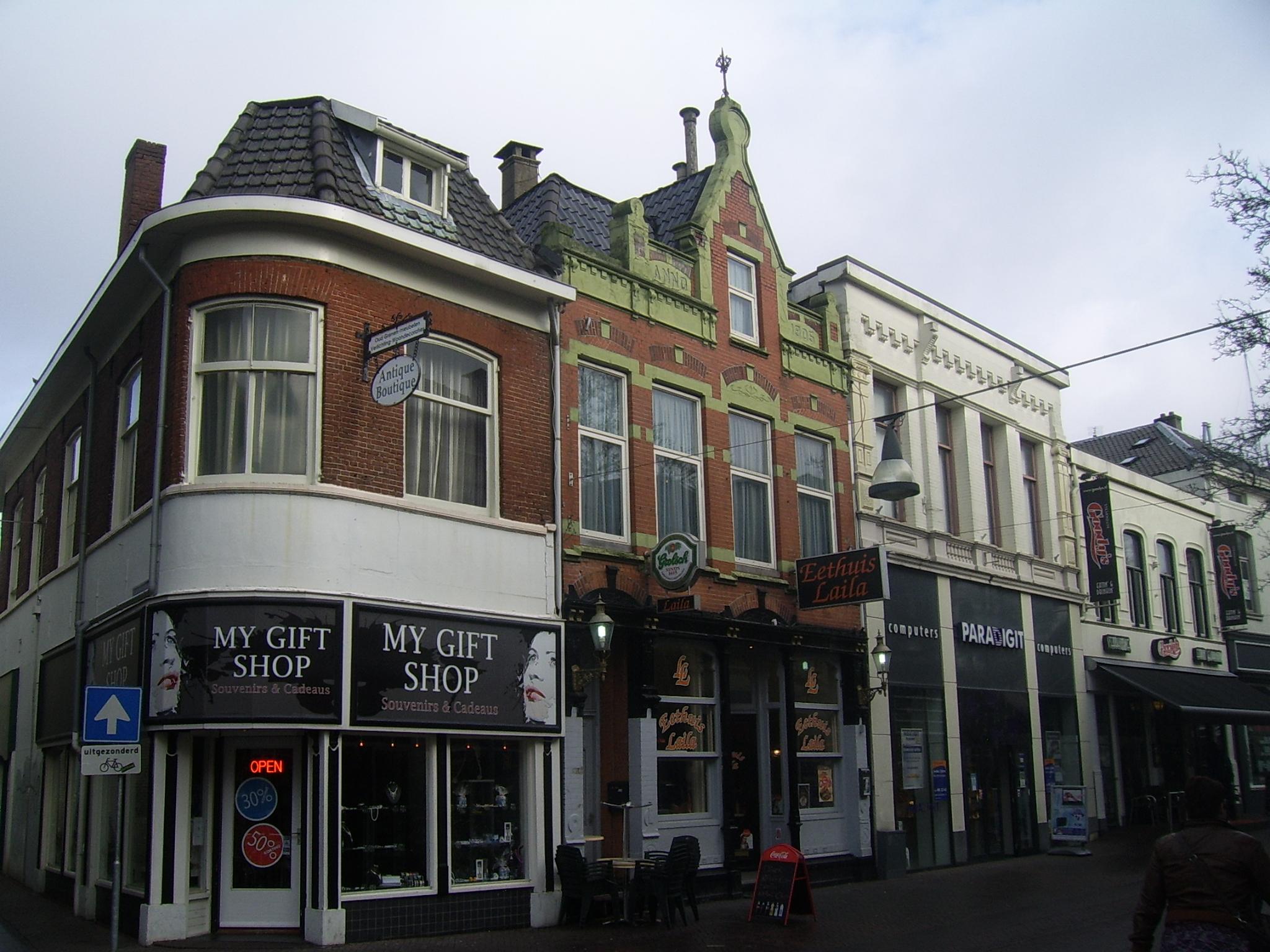 Op onderstaande foto staat op de zijgevel van het pand Veenstraat 8: In iedere pan vlees van Leverman.
