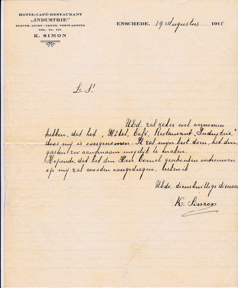 Haaksbergerstraat 4 Hotel Industrie advertentie Tubantia 29-9-1936.