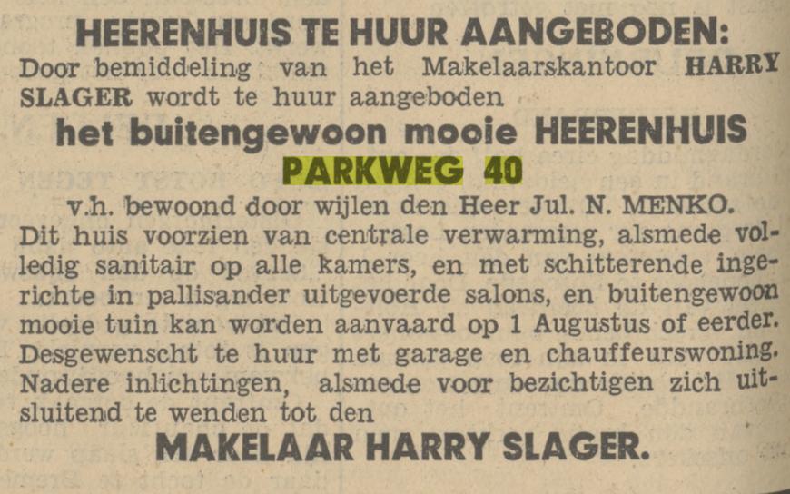 sedert Woensdag jl. de villa van den heer J Menko N. Jz. aan de Parkweg