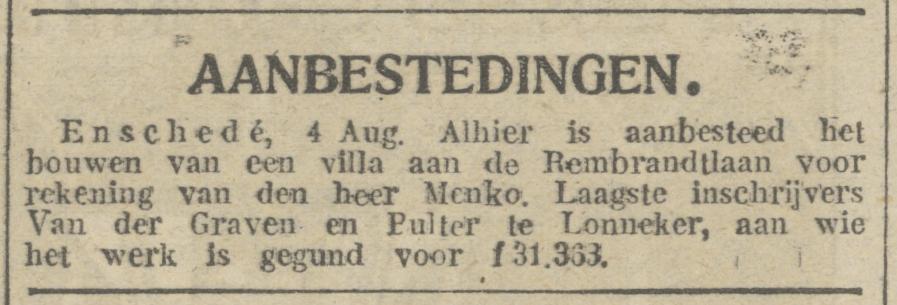 Rembrandtlaan villa Menko krantenbericht De Maasbode 4-8-1915.jpg