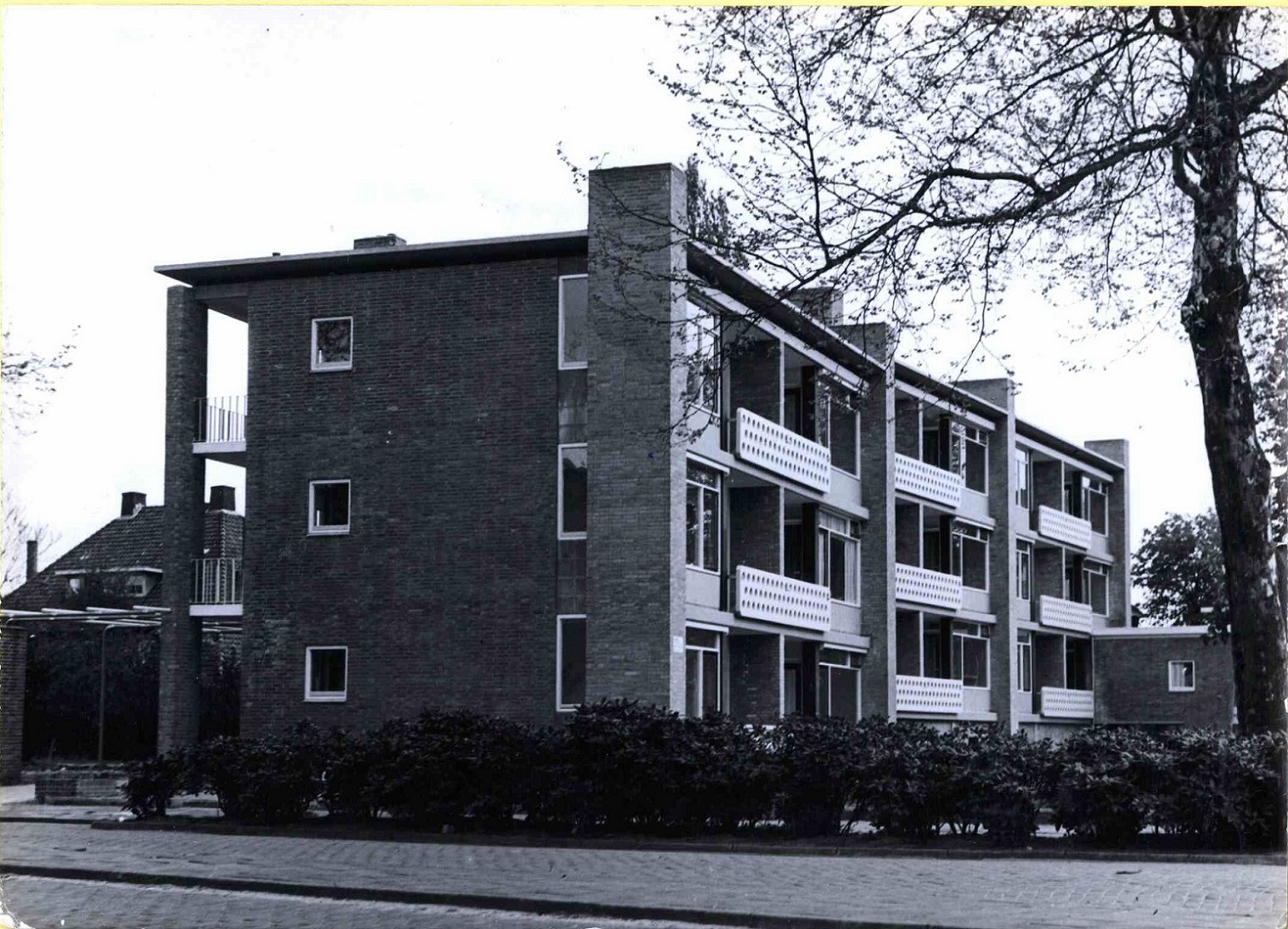 Kortenaerstraat 20-30 Zicht op een flat hoek M.H. Tromplaan 1953.jpg