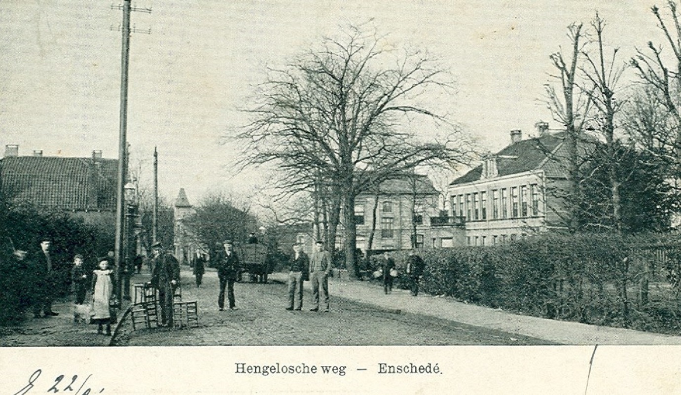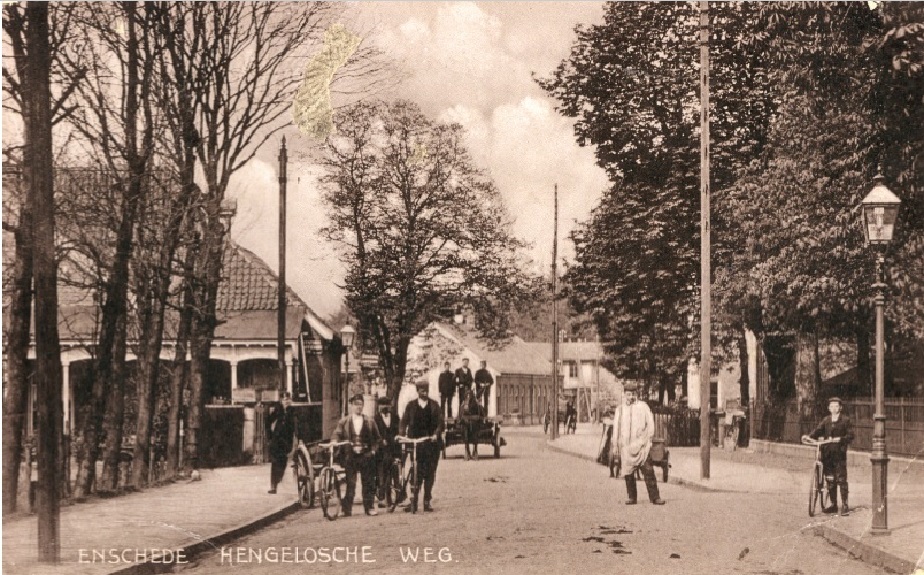 De "lange Huus"werden al gebouwd in 1837 door Helmig van Heek aan de linkerkant van deze Hengelosestraat. Stroink vermeld dat het er 30 waren voor de eerste textielarbeiders. Aan het begin was een tapperij een grote herberg ontstaan, met de naam Voermans Welbehagen. De aanleg van de weg naar de Pruisische velden maakte van de Beckummerweg als verbinding met het westen (het Twentse Haagje , Goor)een route van de tweede orde. De statige Napoleons-eiken markeerden de nieuwe straatweg van de Hengelose tot de Enschedese kerktoren, bijna kaarsrecht. Hier op de hoek Hotel 't Zwik bekend van bruiloften en partijen, maar van sportuitvoeringen, muziekrepetities en als logeergelegenheid. ook werd er gebridged. Verderop de garage van Zinger, kruidenier Van Hoorn, postagentschap Loos en vele andere bekende zaken. Guigelaar was de beste comestibles-zaak en de slager was bereid om de speklappen in het Zwik desnoods door de brievenbus te bezorgen. Onder de deur deur kon daar nier. links achter deze Lange Huus lagen een bedieningspaadje en de woningen in het Wageler. bron: https://www.enschedeinansichten.nl/coll ... 892-detail