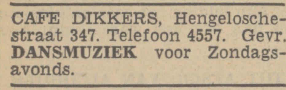 Hengelosestraat 347 cafe Dikkers Advertentie. Twentsch nieuwsblad. Enschede, 16-04-1943..jpg
