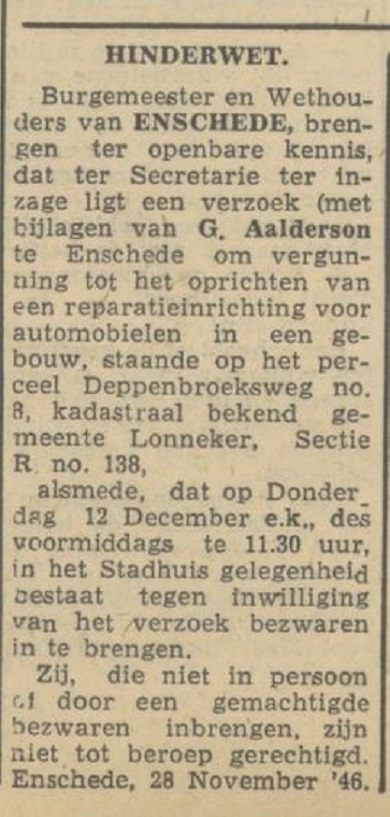 Aalderson's Transp.- en Touringcarbedrijf, Deppenbroeksweg 8