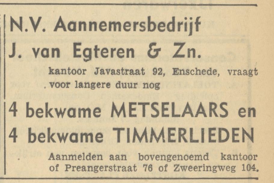 Aannemersbedrijf J. van Egteren & Zn N.V., Javastraat 92