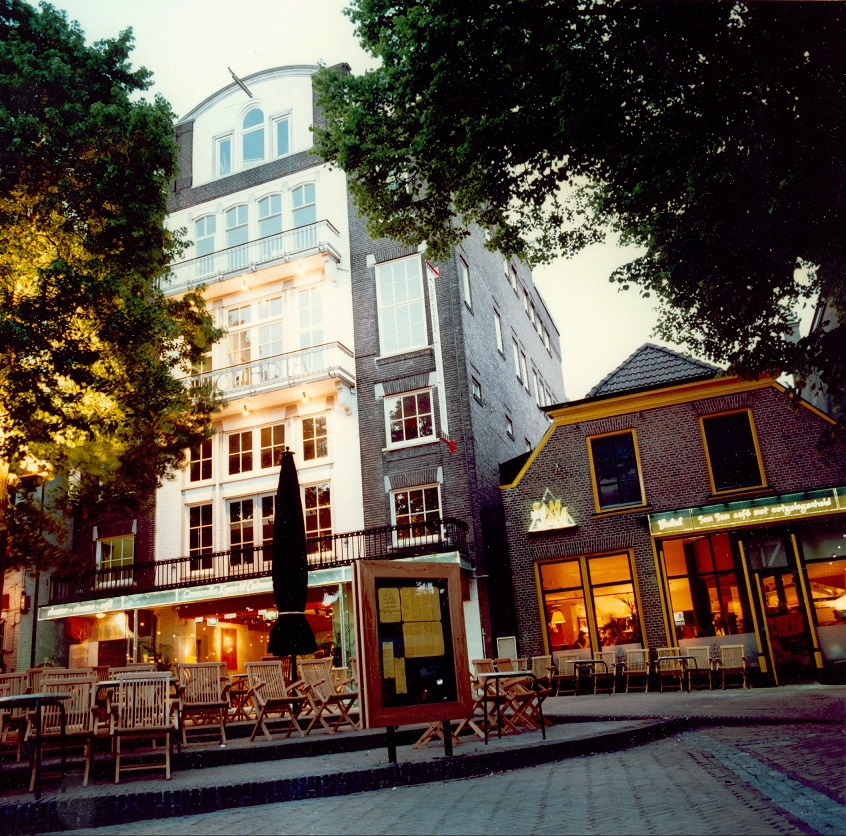 Het Concordiapand aan de Oude Markt 15 is door de horeca wel veranderd, maar blijft nog een mooi pand samen met het naastgelegen SamSam