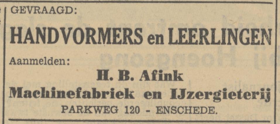 Afink, H.B. Mach.fabr. en IJzergieterij, Parkweg 120.