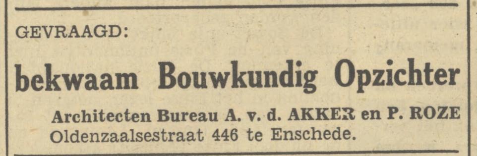 Akker, A. v.d. Archit., Oldenzaalschestraat 446.