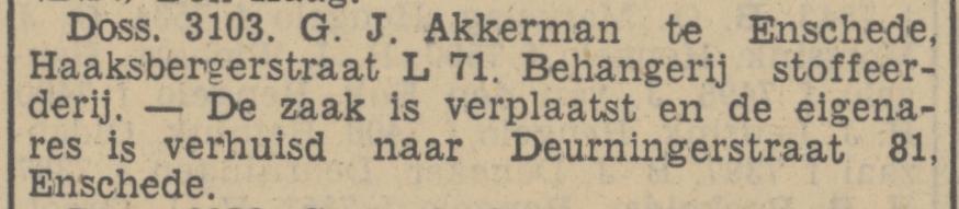 Akkerman, G.J.J.Beh., stoff., woninginr., Deurningerstraat 81.