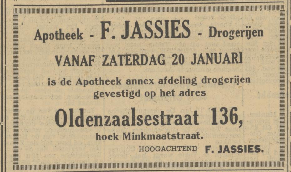 Apotheek F.A.J.F. Jassies, Oldenzaalsestraat 143.
