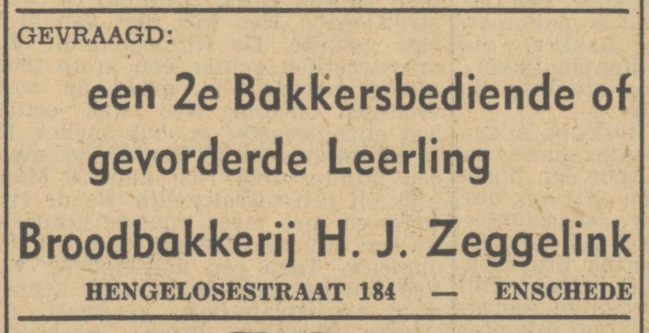Zeggelink, H.J. Brood- en banketbakkerij. Hengeloschestraat 184