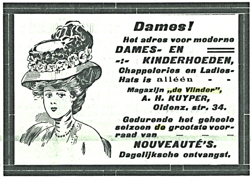 1901 Hofstraat 9, 1903 Kalanderstraat 15, 1915 Langestraat 10, 1920 Hengelosestraat 33 later daar ook herenmodezaak. Eind zestiger jaren de laatste advertentie.