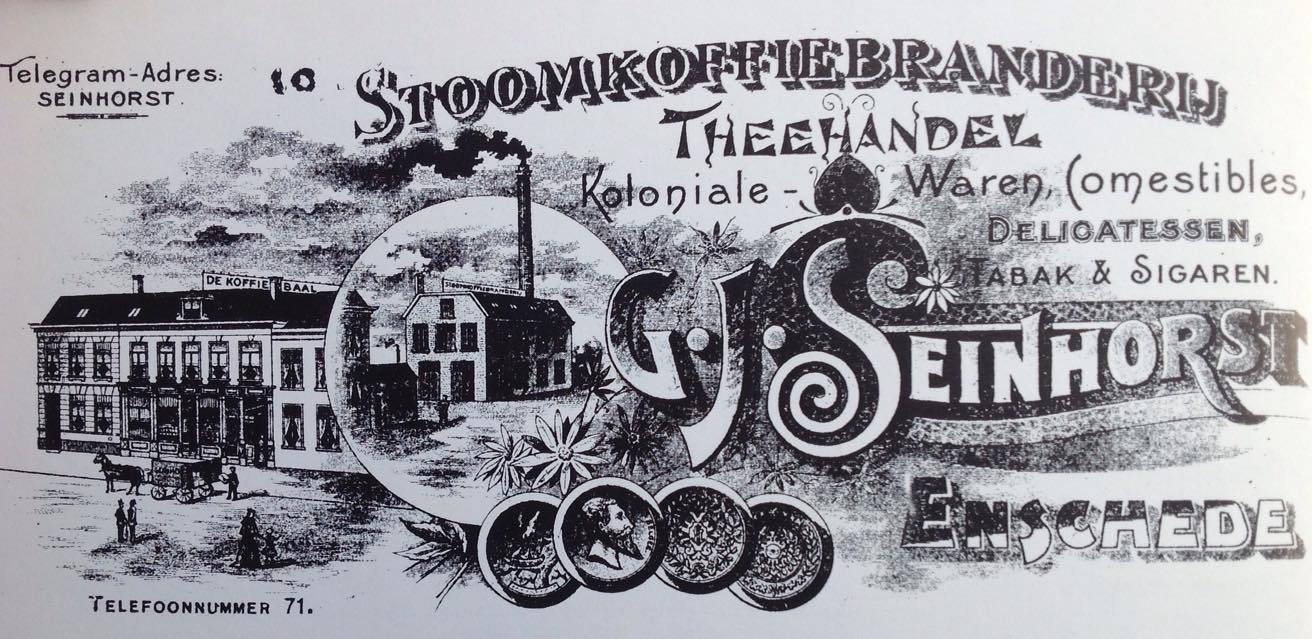 Alsteedsestraat later Kalanderstraat Stoomkoffiebranderij G.J. Seinhorst briefhoofd