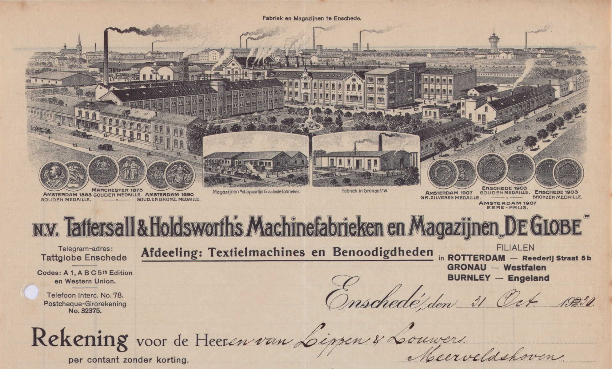 Drukplaat en briefhoofd. Tattersall & Holdsworth.