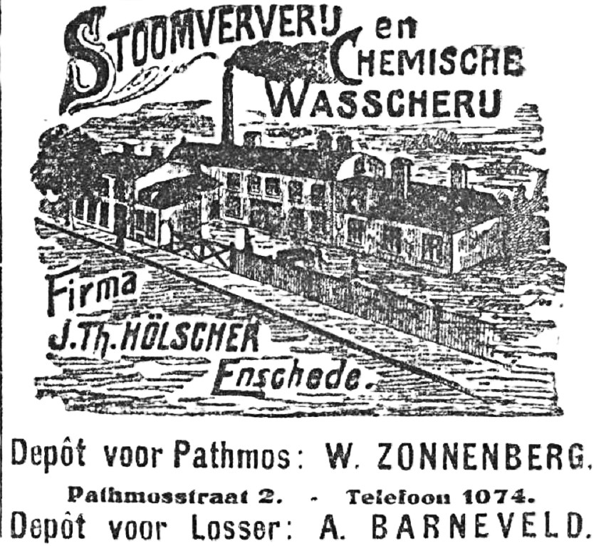 Brinkstraat 57 Stoomververij en Chemische Wasscherij Fa. J.Th. Hölscher advertentie Tubantia 16-3-1929.