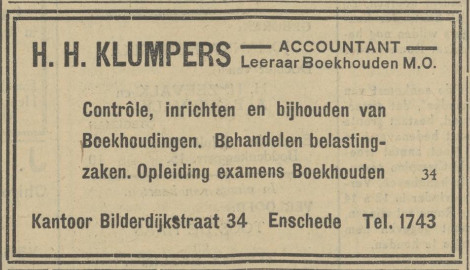 Klumpers, H.H. Account., leer. boekh. MO, Bilderdijkstraat 34