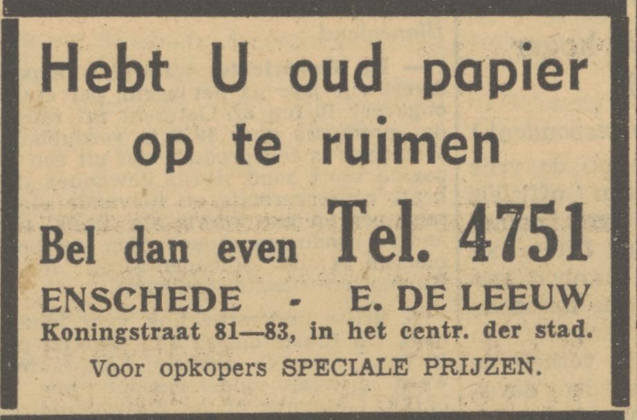 4751 Leeuw, E. de Zadelm. En lederh., Koningstraat 81