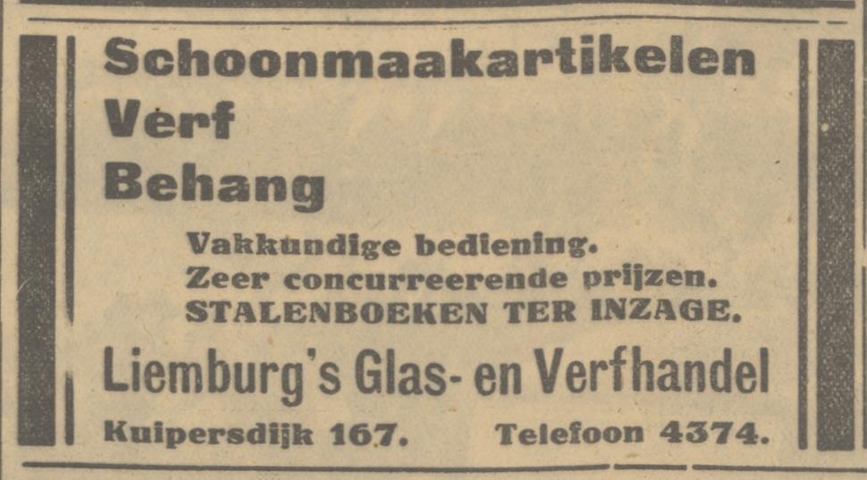 4374 Liemburg, T. Glas- en verfh., schilder, v.h. Gebr. Liemburg, Kuipersdijk 167