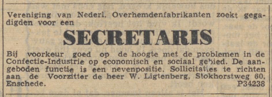 Ligtenberg, W. Dir. N.V. v.h. van Tijn’s Conf.bedr., Stokhorstweg 60.