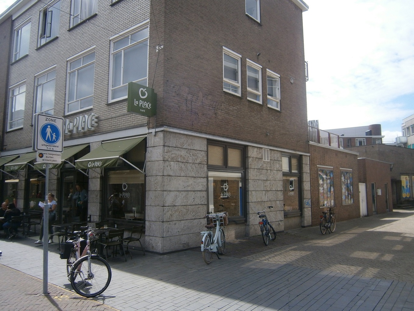 Restaurant La Place op de hoek Raadhuisstraat en Windbrugstraat. Vroeger was dit 't Raedthuys Hotel en later wnkel van Douwe Egberts.i