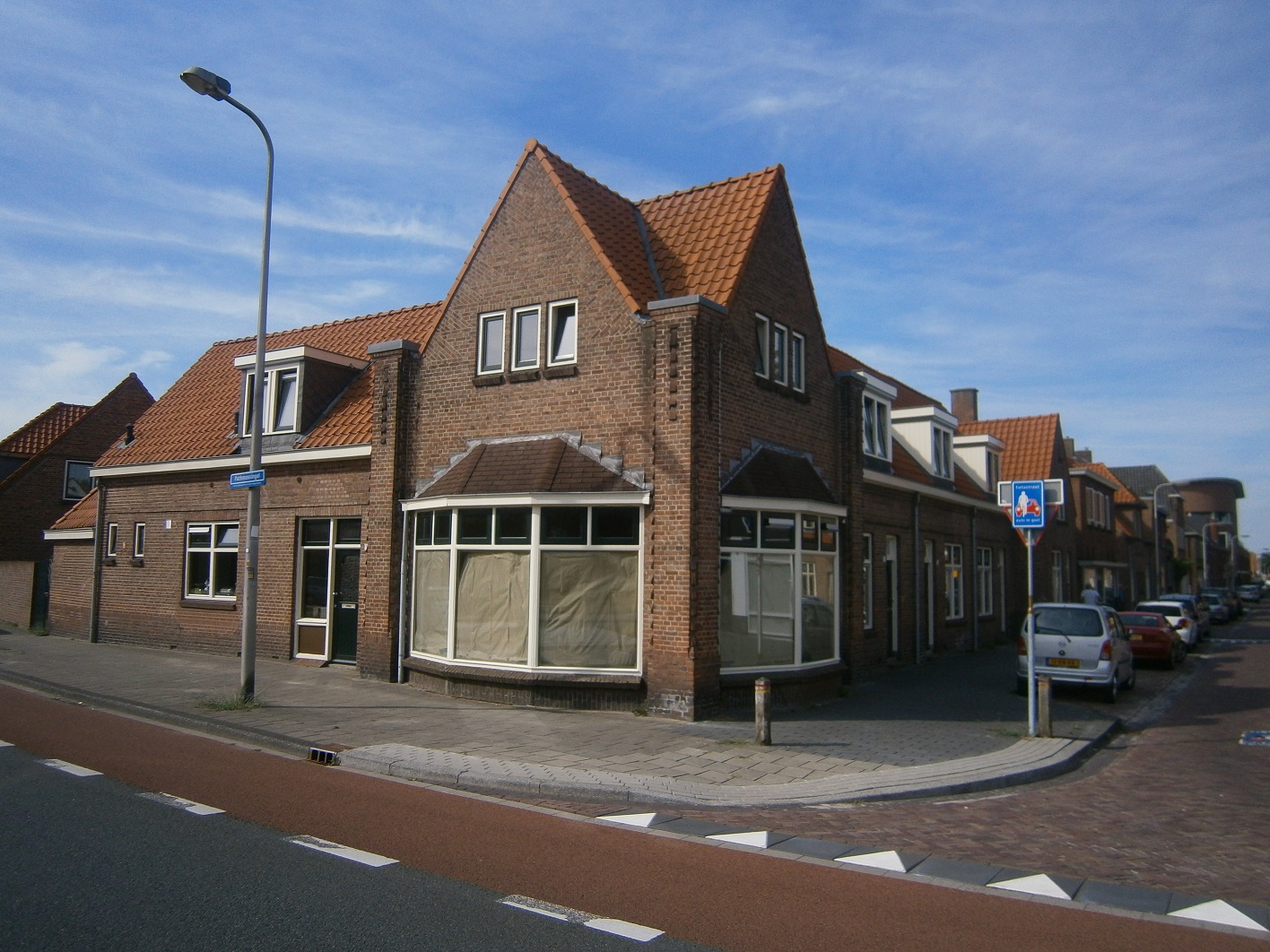 Daar moet je het wel zoeken. Maar nu nog de straatnaam. Voor de duidelijkheid hierbij iets meer van de gevel. Het is dus een hoekpand.