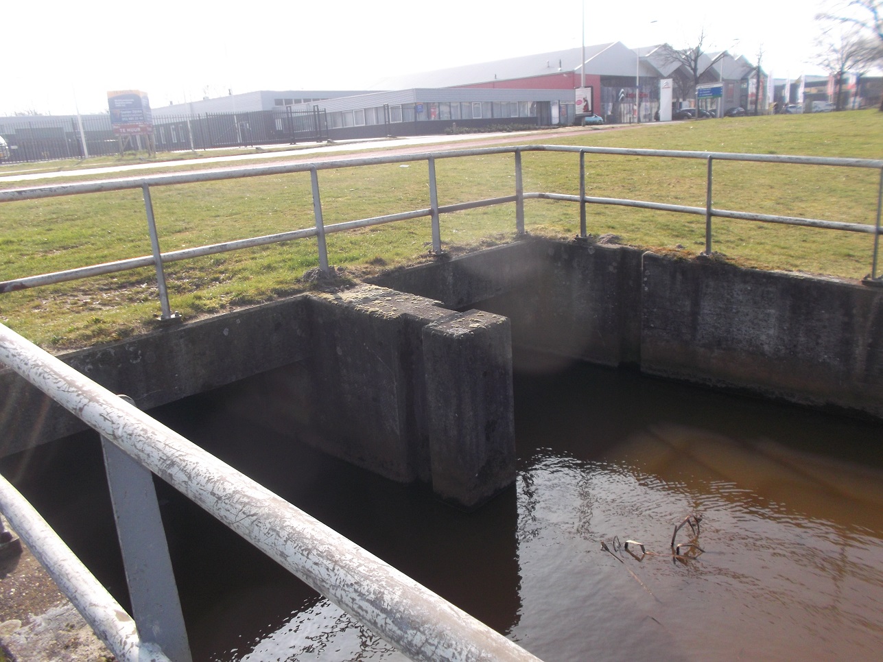 Dit is de riool overstort zelf, het grijze vlak met de bruine lijn er in is dat ding. Die bruine lijn is het afvoerkanaal waarin de modder verzamelt. Weet ik zeker, ik heb het zelf helpen bouwen toen ik bij van Merkstein werkte :D