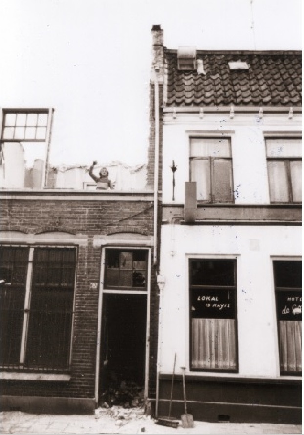 Walstraat 69 Voorzijde van pand dat wordt gesloopt en rechts Turks café Lokal 19 Mayis 1976..jpg