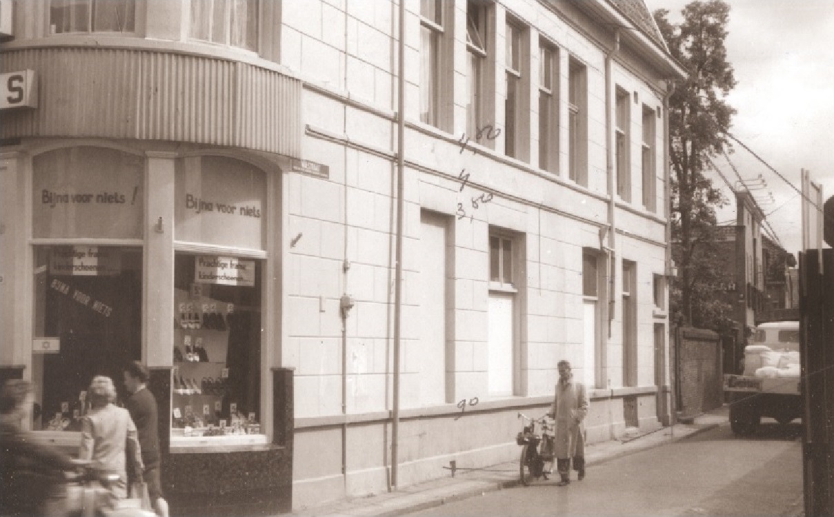 In het verleden (1967) zat in het hoekpand Markt 9 en Walstraat 50 een schoenenzaak.
