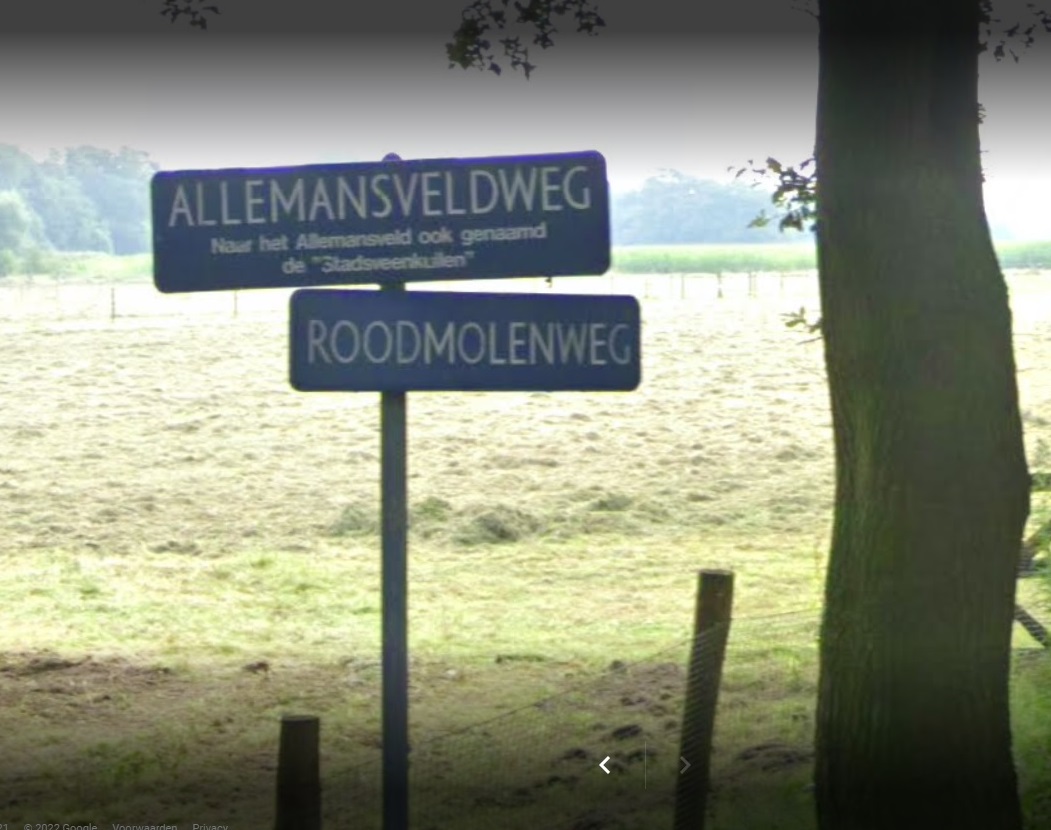 straatnaambord Roodmolenweg.