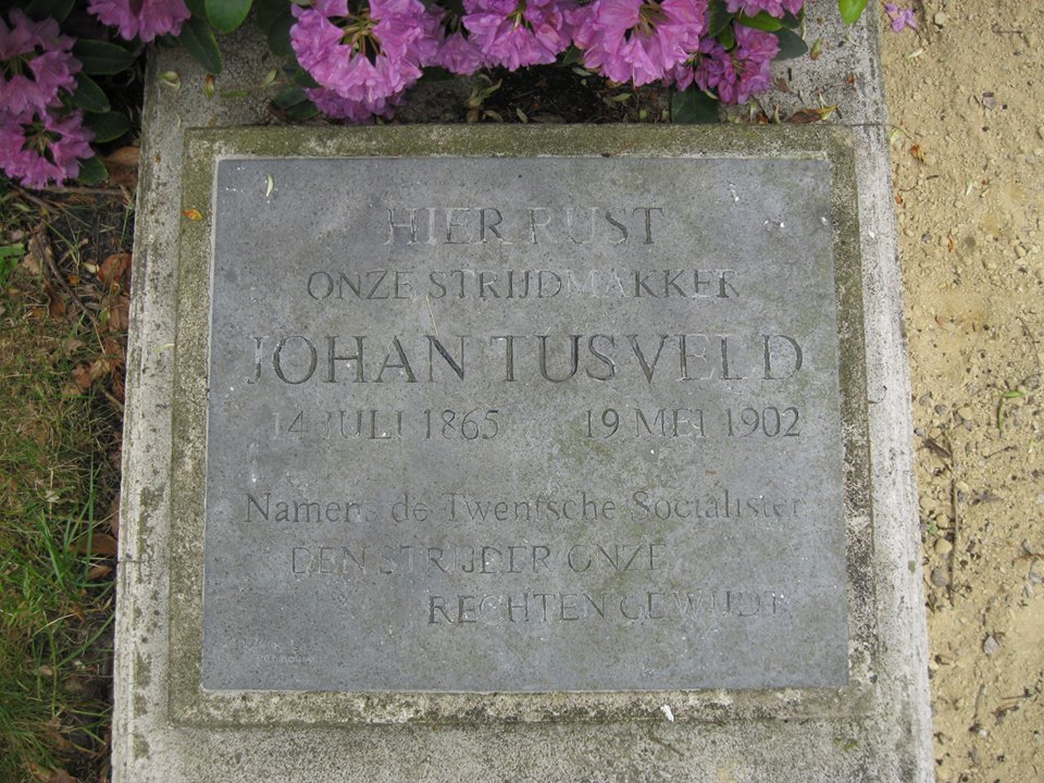 De grafsteen van Johan Tusveld op het Boerenkerkhof aan de Deurningerstraat.