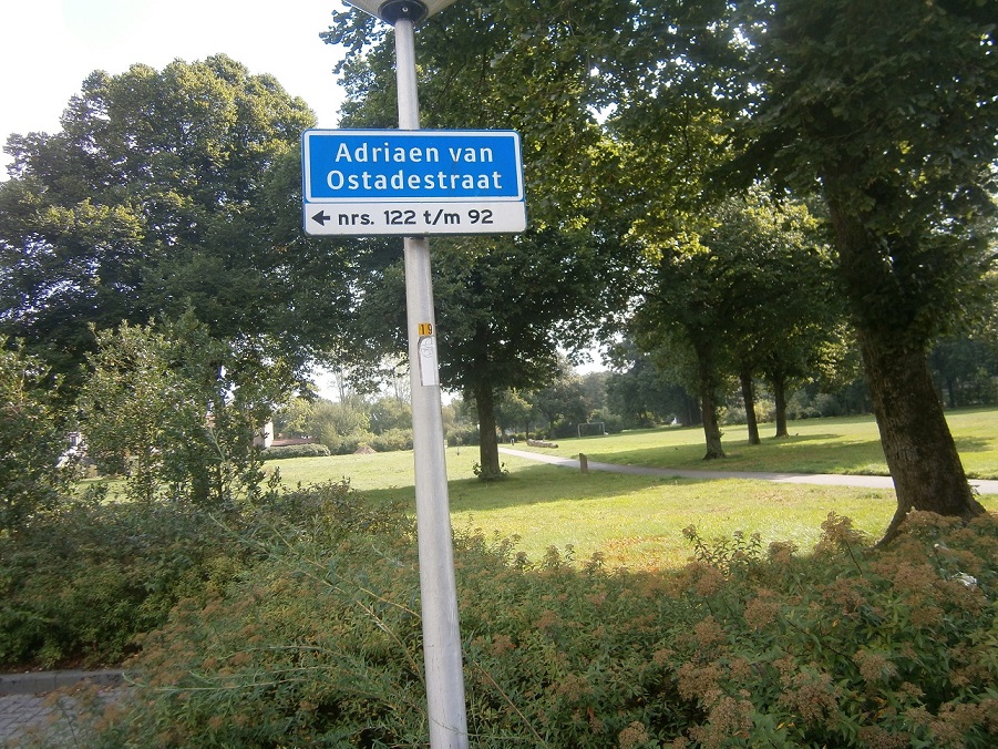 Ik ben maar begonnen met het fotograferen van straatnaambordjes in mijn eigen omgeving, met als eerste de Adriaen van Ostadestraat. Het eerste dat me daarbij opvalt dat de naam op een van de borden fout is vermeld, n.l. als Adriaan van Ostadestraat.