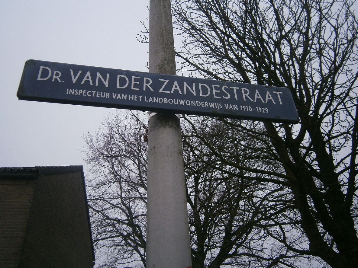 Naar Dr. Karel Hendrik Marinus van der Zande, geboren 9 februari 1864, onder andere inspecteur van het landbouwonderwijs van 1 april 1910 tot 28 februari 1929 (4 maart 1929 voormalig Lonneker, gewijzigd 29 mei 1936, 9 november 1953 en 12 juli 1954). De bij raadsbesluit van 4 maart 1929 van de voormalige gemeente Lonneker vastgestelde omschrijving, gewijzigd 29 mei 1936, luidende: "van de Haaksbergerstraat n.w.-waarts tot de Wethouder Nijhuisstraat" is door het besluit van 9 november 1953 vervallen. De daarna vastgestelde omschrijving luidde: "van de Haaksbergerstraat n.w.-waarts tot de Hennepstraat". bron: http://straatnamen.enschede.nl/straten/01176/?char=D