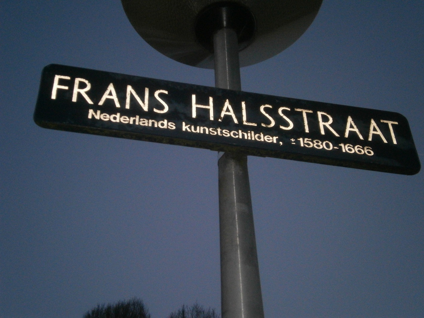 Naar Frans Hals, geboren circa 1580 te Antwerpen, overleden 26 augustus 1666 te Haarlem. Was begaafd portret-, corporatie- en genreschilder, wiens werken in bijna alle grote musea zijn te vinden (12 juli 1954). bron: http://straatnamen.enschede.nl/straten/00377/?char=F