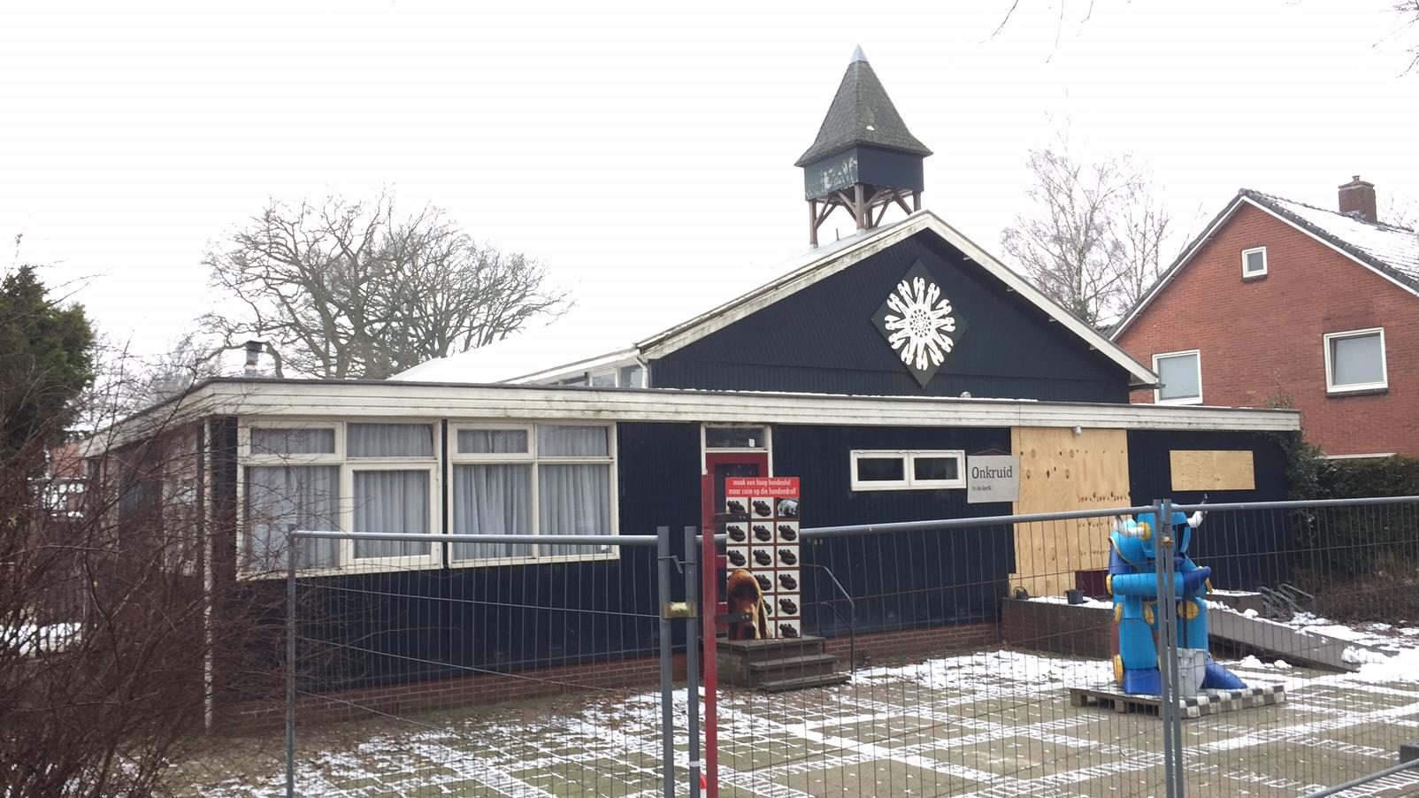 De kunstenaars die eind vorig jaar uit een oude kerk in Boekelo werden gezet zijn terug. En dit keer laten ze zich niet zomaar wegjagen. Ze willen de kerk opknappen en behouden voor het dorp. Volgens de kunstenaars is er eind december onterecht ingegrepen. ,,Wij plegen geen huisvredebreuk, de kerk was al twee jaar niet meer in gebruik toen we er gingen wonen en werken. De mensen die betrokken waren bij de zogenaamde ontruiming hebben bij ons huisvredebreuk gepleegd", zegt Kitty Kruidhof namens de kunstenaars. "Nu de besprekingen met de eigenaar fout zijn gegaan zijn wij niet meer bereid hem tegemoet te komen en zijn we in zijn geheel tegen de sloop." Zeven kunstenaars streken half december neer in Boekelo, kraakten de leegstaande Nederlandse Hervormde Kerk aan de Kwinkelerweg en weigerden weg te gaan. Voorzitter Jan Berenbroek van de kerkrentmeesters zat er best mee in z'n maag, want de houten kerk die al jaren leegstaat, wordt binnenkort gesloopt. Voorlopig zitten de kunstenaars er weer in. bron: http://reliwiki.nl/index.php/Boekelo,_K ... ormde_kerk