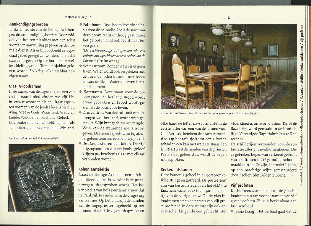 Ook bij de ingang van deze kamer hangt een bordje met de tekst Kerkeraadskamer. In het boekje wordt ook gesproken over kerkeraadsleden en het Nederlands Israëlitisch Kerkgenootschap.