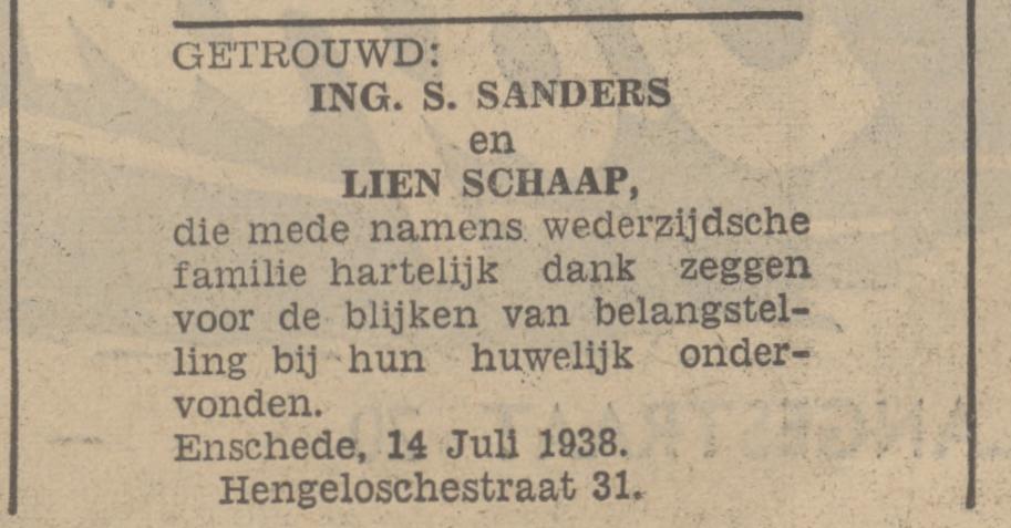 Sanders-Schaap, Mevr. L. Hengelosestraat 31