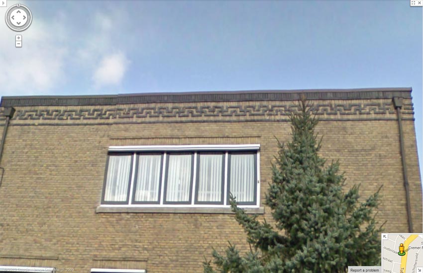 Toen ik de foto's in deze rubriek nog eens aan het bekijken was,schoot mij plotseling te binnen dat de rand boven aan het pand vroeger bestond uit haken kruizen. Toen ik eens wat beter inzoomde bleek mijn geheugen mij niet in de steek gelaten te hebben. Nu zijn het allemaal zwarte blokkenArie schreef:Parkweg hoek Borstelweg 1945 en 2013.