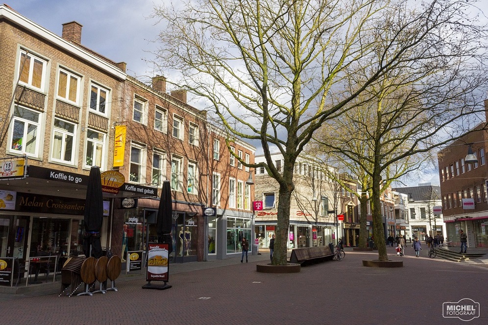 Hier de Tulpstraat in 1998 en 2019 vanaf de Rozenstraat richting Singel