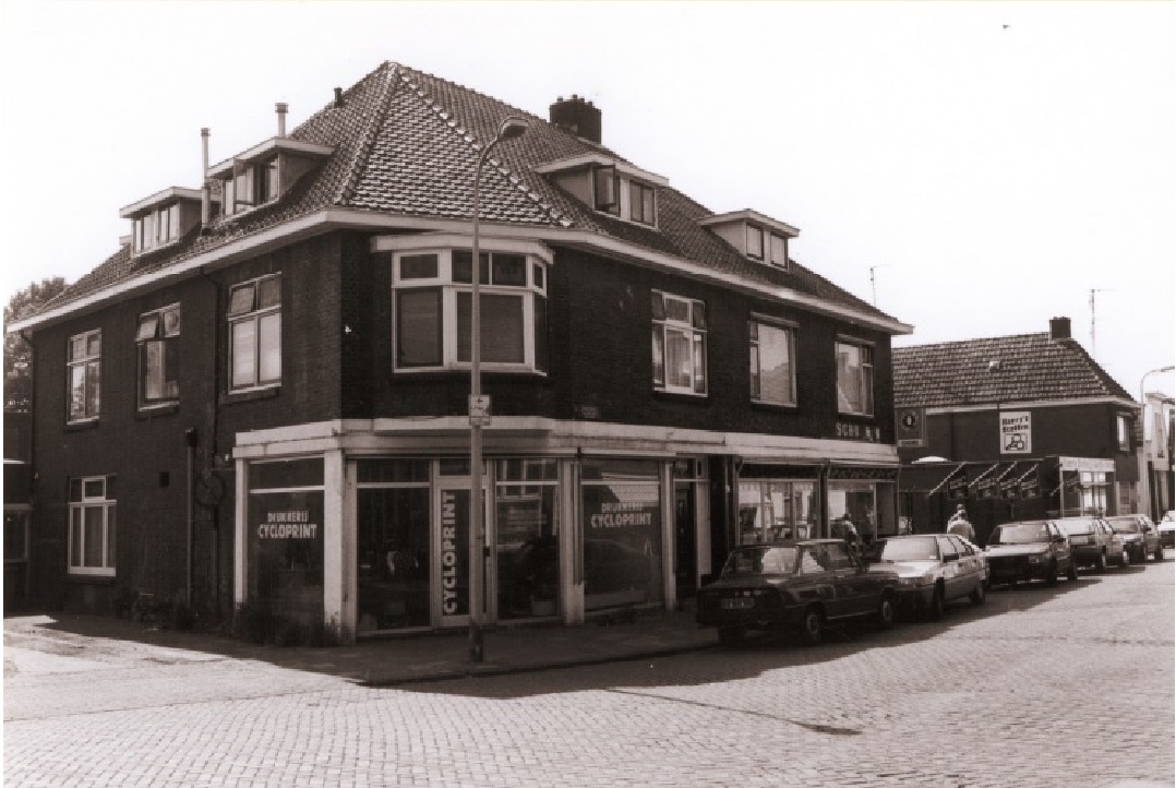 Zwedeweg hoek 2e Emmastraat vroeger Hopp boekhandel, later winkel Cycloprint en nu staat er een appartement