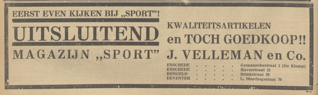 Gronausestraat 1 De Klomp Magazijn Sport J. Velleman en Co advertentie Tubantia 19-3-1932.jpg