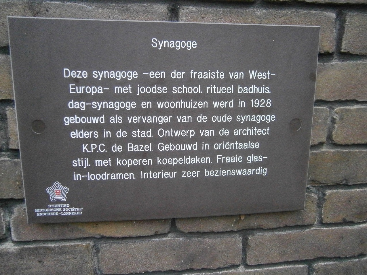 Monumentenbord nr. 16 van de lijst. De Synagoge aan de Prinsestraat 14-18.