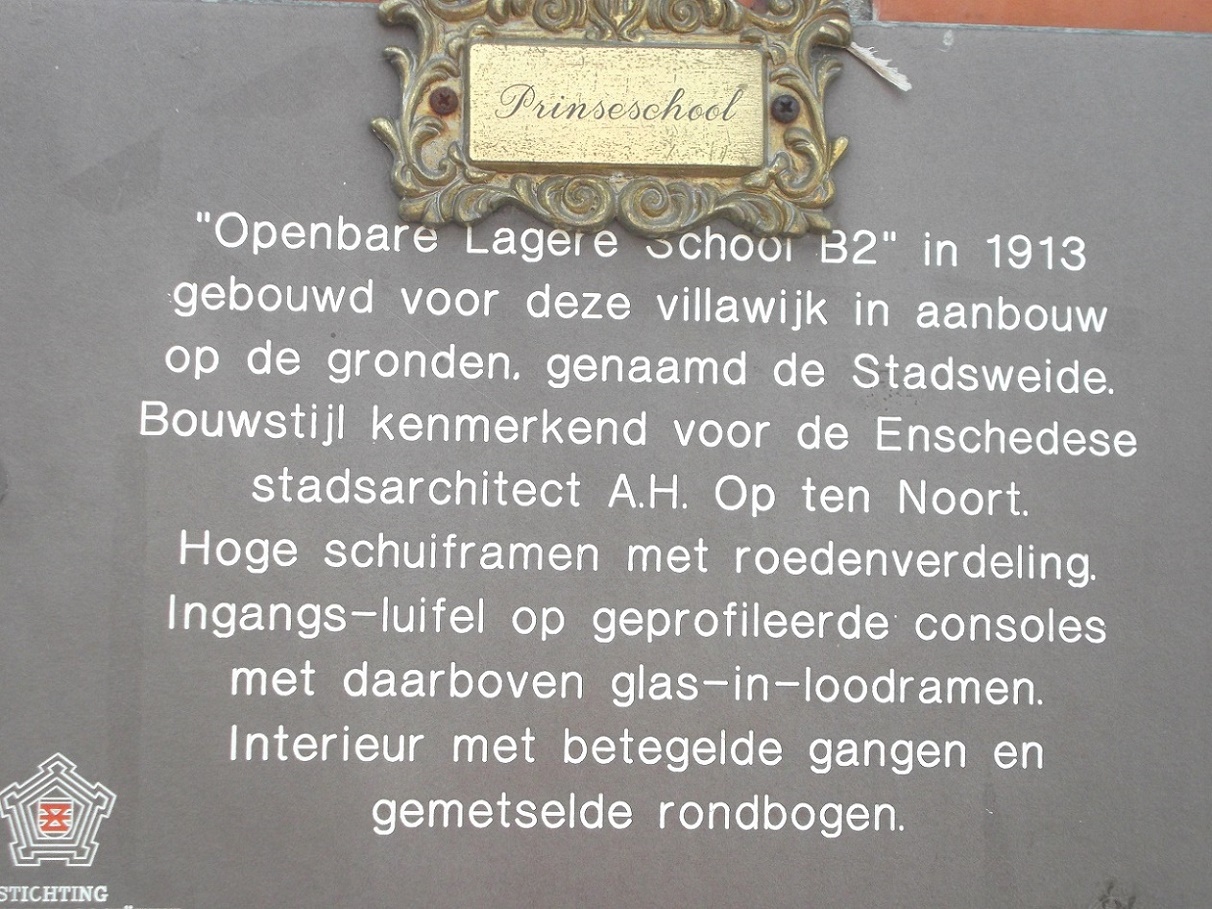 Monumentenbord nr. 17 van de lijst. School De Stadsweide, ook wel Prinseschool genoemd, aan de Prinsestraat 10. Deze school is een rijksmonument. Zie voor een beschrijving van dit monument alsmede foto's mijn bericht van 14-7-2018 in deze topic op: viewtopic.php?f=9&t=223&p=172615&hilit= ... nt#p172615