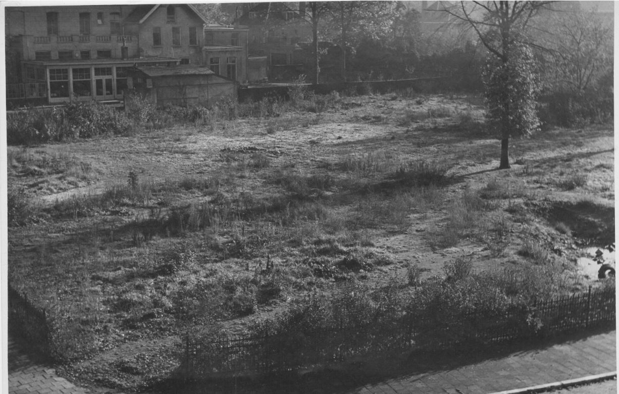Stadsmatenstraat hoek Parkweg, terrein dat door oorlogsschade braak is komen te liggen, Datering 1946